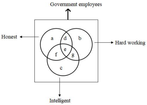 In the given Venn diagram, which part stands for government employees who are honest, intelligent but NOT hardworking?
