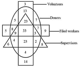 Study the given diagram carefully and answer the question. The numbers in different sections indicate the number of persons.