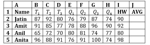 The correct calculation of Jatin’s six-week weighted average involves multiplying the test scores and quiz scores by their respective weights and summing them up. Formula (d) divides the test scores by
