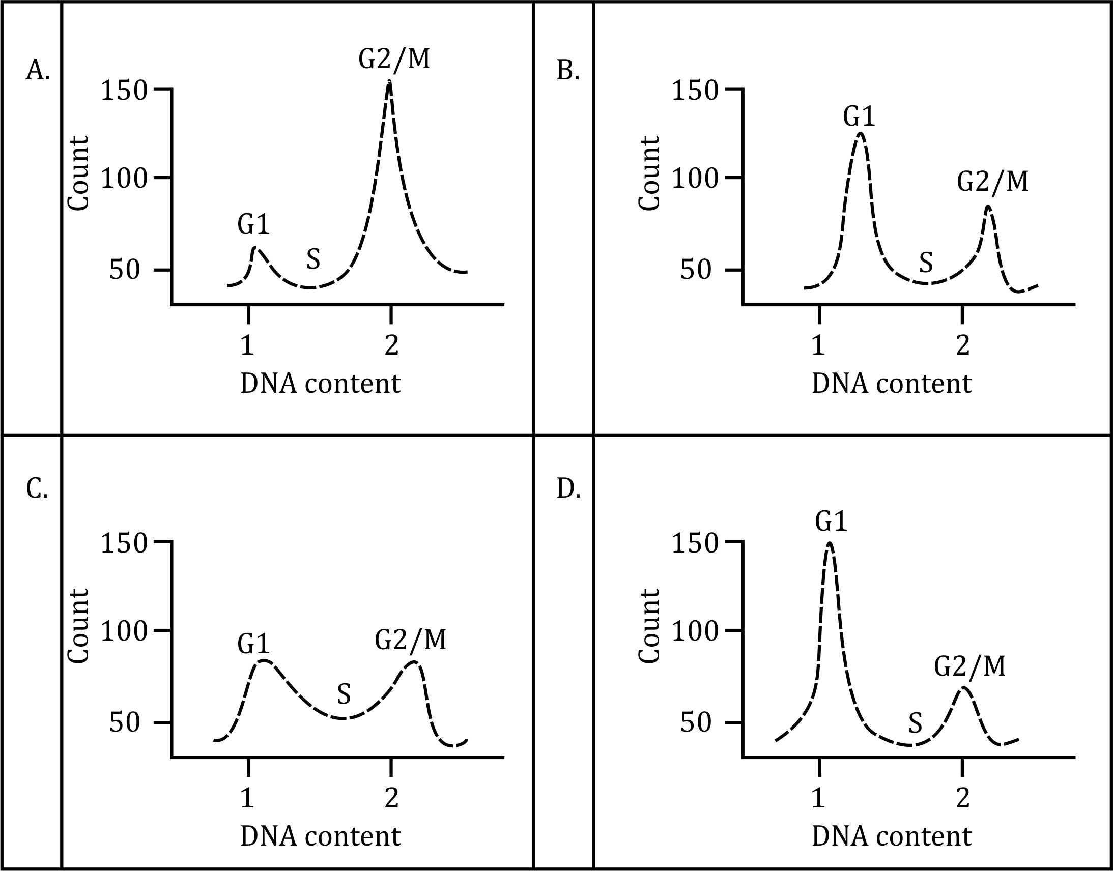 - Graph C represents a normal cell cycle pattern.