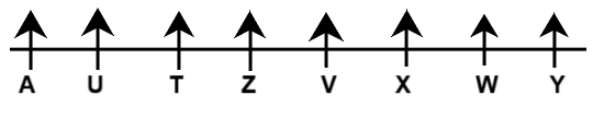 T, U, V, W, X, Y, Z and A are sitting in a straight row, facing north. Only Z sits between T and V. A sits at the extreme left end of the row. Only th