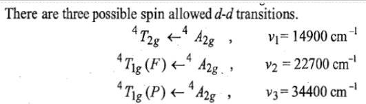 In d3octahedral complexes the d-orbitals split into t2g (lower energy) and eg (higher energy) orbital. Therefore, in ground state the electronic configuration is