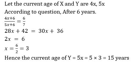 The ages of X and Y are in the ratio 4:5. After 6 years, the ratio will become 6:7. What is the current age of Y (in years)?