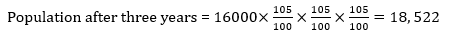 The annual increase in percentage of a population is 5% and the present number of people is 16,000. What will be the population in three years?