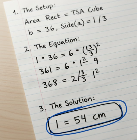 The area of a rectangle is equal to the total surface area of a cube.