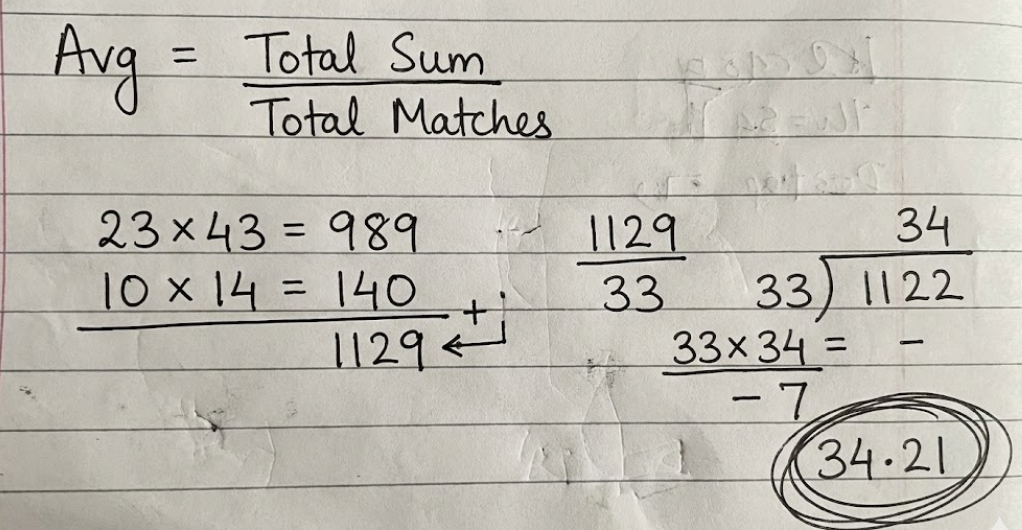 Average of first 23 matches = 43