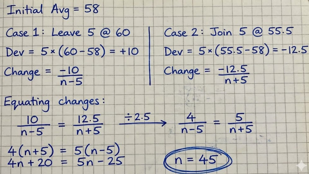 New total weight = 58x + (5 × 55.5) = 58x + 277.5