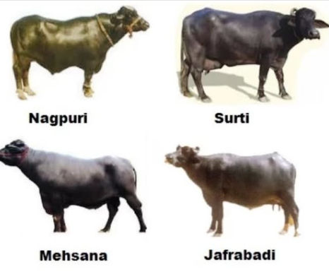 - Nagpuri: Origin: Maharashtra (Vidarbha region) Also called: Ellichpur Features: Suitable for drought and milch purposes Milk yield: Moderate (800–1200 liters/lactation)