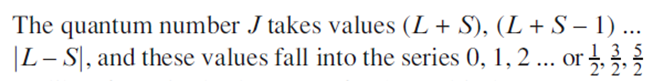 The value of J for the ground state is given by (L-S) for a sub-shell that is less than half-filled, and by (L+S) for a sub-shell that is more than half-filled.