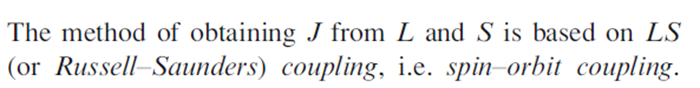 The interaction between the total angular orbital momentum, L, and the total spin angular momentum, S is defined by the total angular momentum quantum number, J.