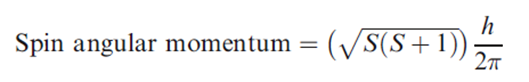 The spin quantum number, s, determines the magnitude of the spin angular momentum of an electron and has a value of 1/2. For a 1-electron species, ms is the magnetic spin angular momentum and has a value of +1/2 or -1/2. The spin angular momentum for a multielectron species is given by the following equation, where S is the total spin quantum number.
