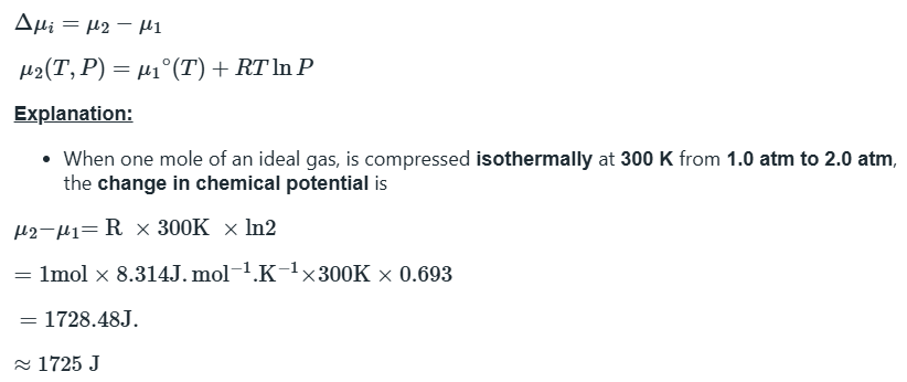 The change in chemical potential when the pressure of an ideal gas is changed from 1atm to P atm at constant temperature is given as: