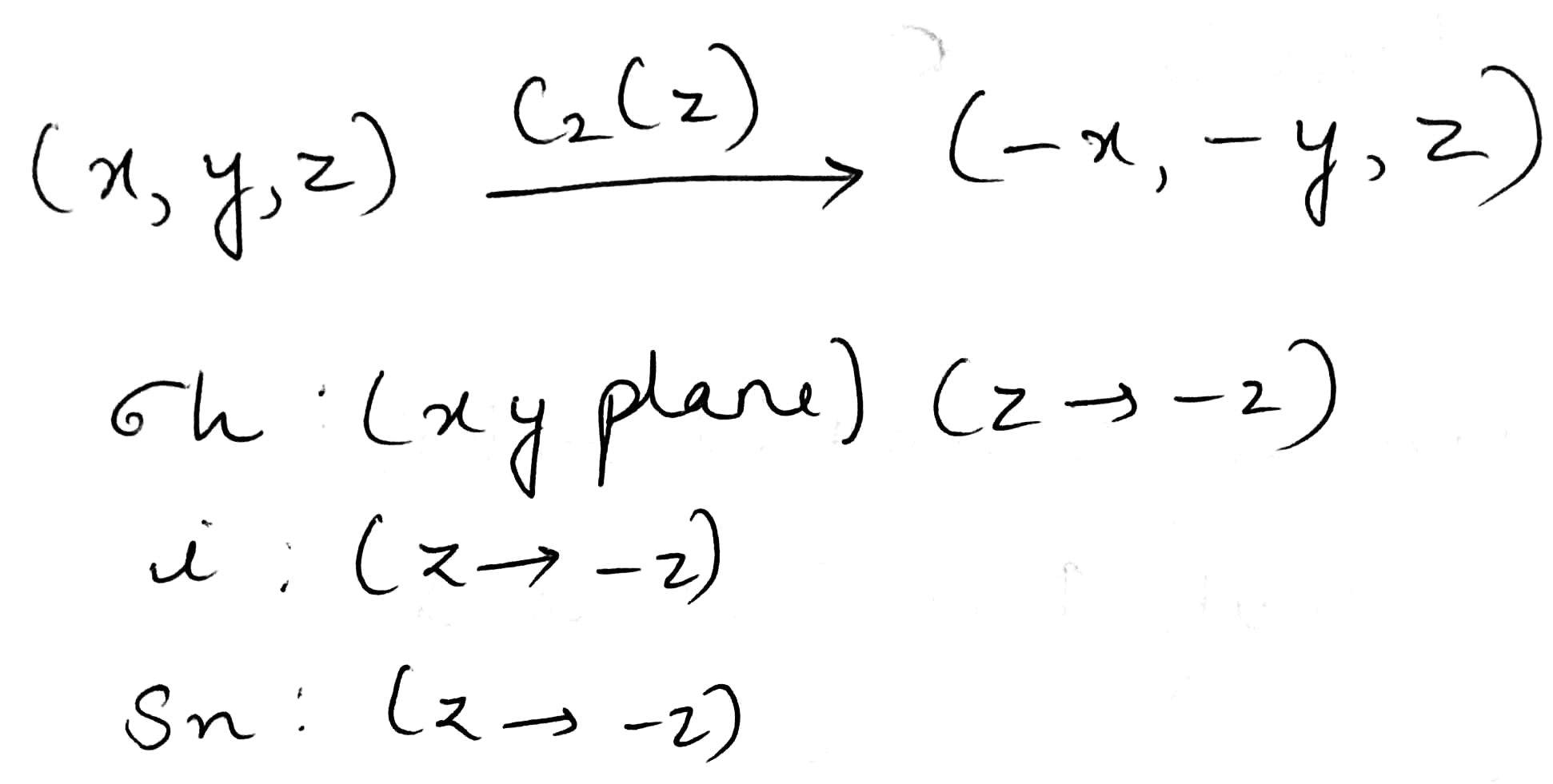 A molecule that has an n-fold principal axis and n twofold axes perpendicular to Cn belongs to the group Dn. A molecule belongs to Dnh if it also possesses a horizontal mirror plane.