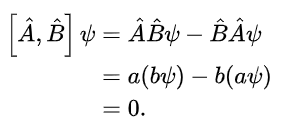 If ψ is an eigenfunction with eigenvalues a and b for observables A and B respectively, and if the operators commute:
