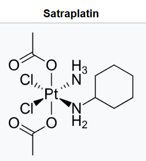 Satraplatin is a platinum-based antineoplastic agent that was under investigation as a treatment of patients with advanced prostate cancer who have failed previous chemotherapy. The drug has also been used in the treatment of lung and ovarian cancers.