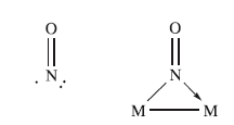 Nitrosyl ligands may also adopt bridging modes, acting as a 3-electron donor.