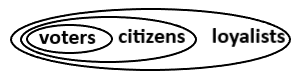 All citizens are loyalists (Citizens → Loyalists).