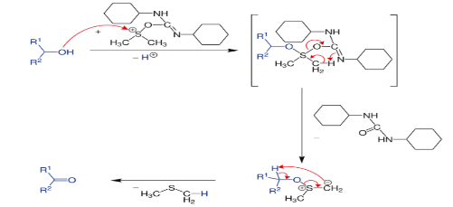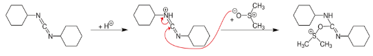 In terms of mechanism, the reaction is proposed to involve the intermediary of a sulfonium group, formed by a reaction between DMSO and the carbodiimide.