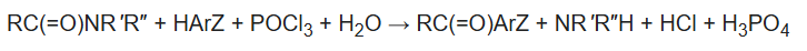 B. The Vilsmeier–Haack reaction (also called the Vilsmeier reaction) is the chemical reaction of a substituted formamide (1) with phosphorus oxychloride and an electron-rich arene (3) to produce an aryl aldehyde or ketone (5):