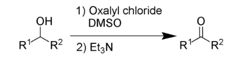 D. The Swern oxidation, is a chemical reaction whereby a primary or secondary alcohol (−OH) is oxidized to an aldehyde (−CH=O) or ketone (>C=O) using oxalyl chloride, dimethyl sulfoxide (DMSO) and an organic base, such as triethylamine.