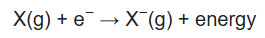 The electron affinity (Eea) of an atom or molecule is defined as the amount of energy released when an electron attaches to a neutral atom or molecule in the gaseous state to form an anion.