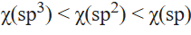 The electronegativity of an atom changes depending on the hybridization of the orbital employed in bonding. Electrons in s orbitals are held more tightly than electrons in p orbitals. Hence, a bond to an atom that employs an spx hybrid orbital for bonding will be more heavily polarized to that atom when the hybrid orbital has more s character. That is, when electronegativities are compared for different hybridization schemes of a given element, the order