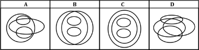 overlapping circles that indicates how much different groups have in common. A way to visualize relationships between different groups, known as sets.