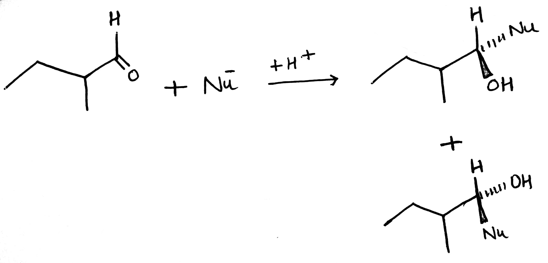 Diastereotopic faces in a chemical compound are non-equivalent faces, i.e., two faces A and B are diastereotopic if the molecule gives rise to diastereotopic pair when the faces are attacked with some reagent (such as Cl-) while the remaining parts of the molecule stay fixed. Diastereotopic faces are always non-identical in any type of environment whether it is chiral or achiral. For instance, two faces of 2-methylbutanal are diastereotopic, as the attack on two faces by an incoming nucleophile generates diastereomeric pair.