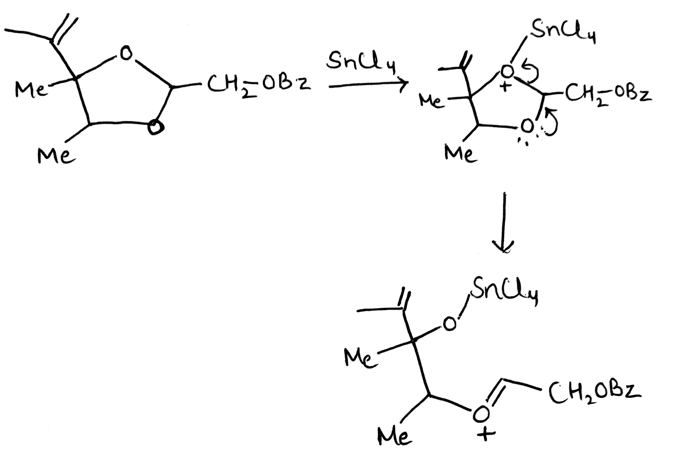 In the given question, SnCl4 (Lewis acid) coordinates with the lone pair of oxygen.