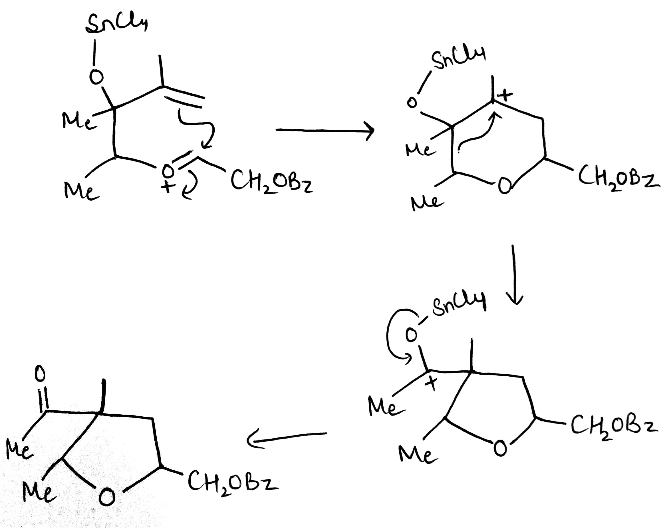 The next step is the Prins reaction. The last step is the Pinacol rearrangement.