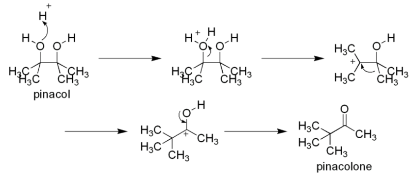 The pinacol–pinacolone rearrangement is a method for converting a 1,2-diol to a carbonyl compound in organic chemistry. The 1,2-rearrangement takes place under acidic conditions. The name of the rearrangement reaction comes from the rearrangement of pinacol to pinacolone.