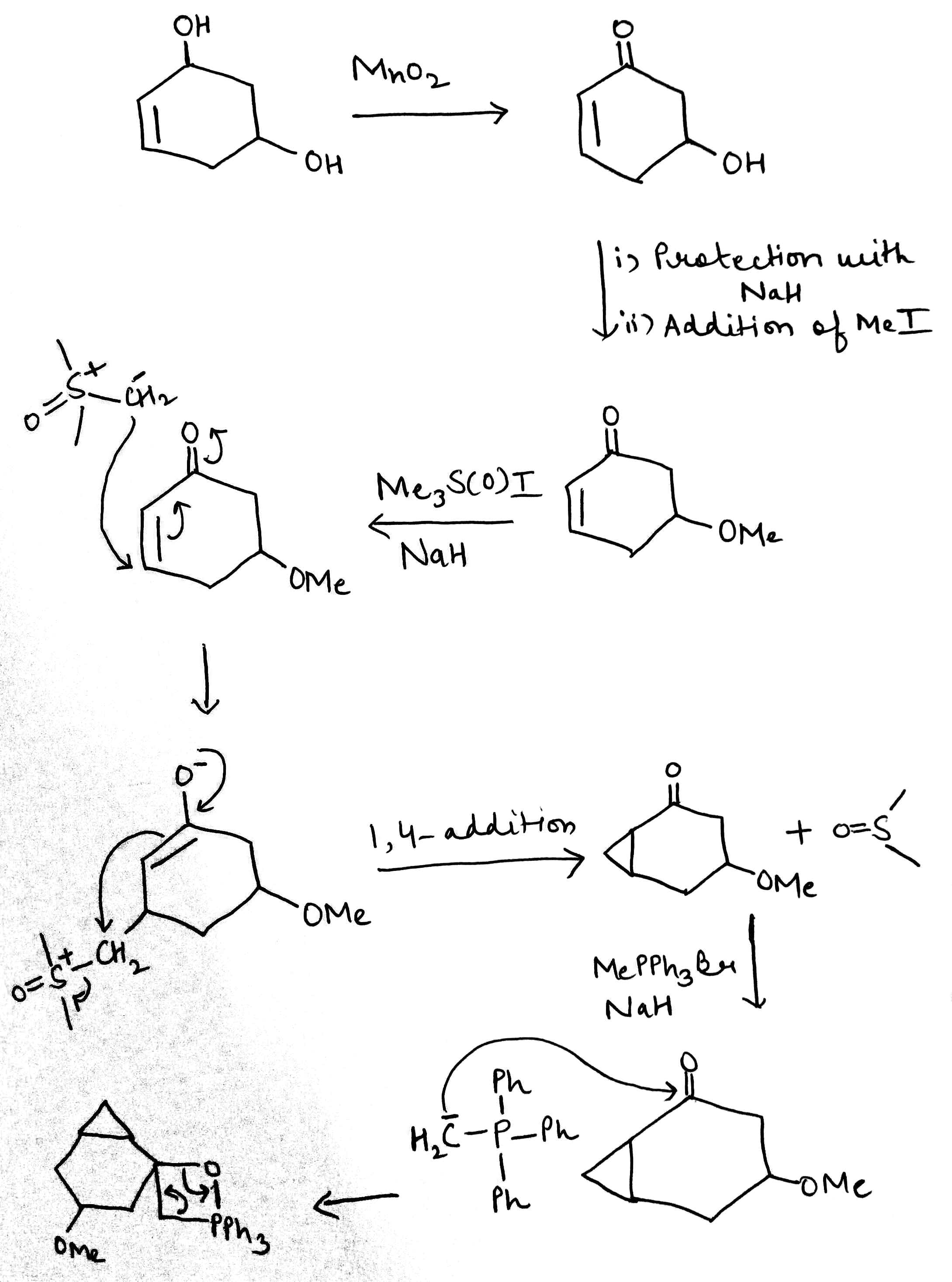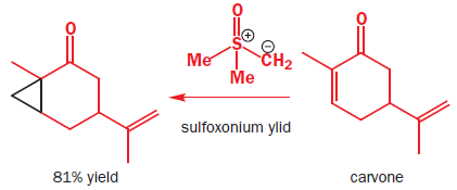 Sulfoxonium ylids react with unsaturated carbonyl compounds in the same way as the stabilized ylids—they form cyclopropanes rather than epoxides.