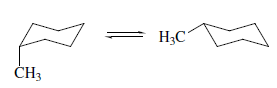 Substitution on a cyclohexane ring does not greatly affect the rate of conformational inversion but does change the equilibrium distribution between alternative chair forms. All substituents that are axial in one chair conformation become equatorial on ring inversion, and vice versa. For methylcyclohexane, ΔG° for the equilibrium