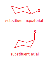 In a monosubstituted cyclohexane, there can exist two different chair conformers: one with the substituent axial, the other with it equatorial. When there are two or more substituents on the ring, stereoisomerism is possible.
