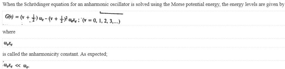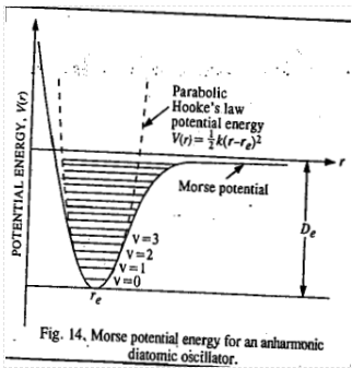 In practice, the molecule does not always vibrate as a simple harmonic oscillator; there is present what is called anharmonicity. In 1929, P.M. Morse suggested an empirical expression for the potential energy of an anharmonic diatomic oscillator, given by