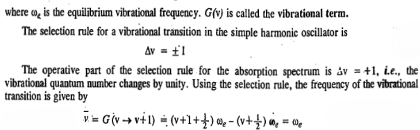 The consequence of anharmonicity is that the vibrational energy levels of the S.H.O. are all slightly lowered and the spacing between them is no longer constant but goes on steadily decreasing with increase in vibrational quantum number. Also, because of anharmonicity, the rule for vibrational transitions is no longer