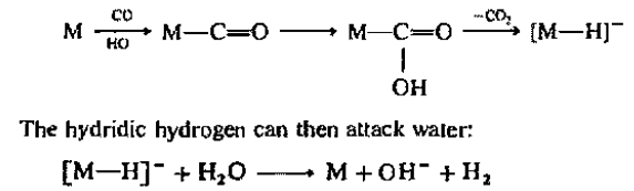 are effective and although all the mechanisms have not been worked out completely, the reactions may be viewed in general terms as beginning with a nucleophilic attack on coordinated carbon monoxide: