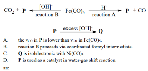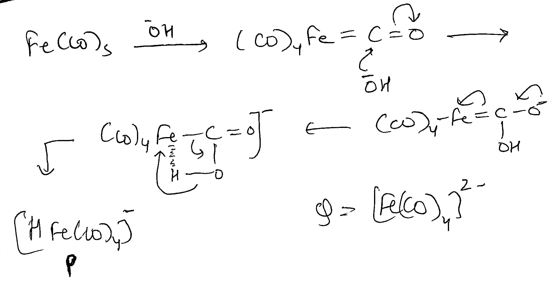Due to the presence of negative charge on the complex P, νCO (in P) is less than νCO in Fe(CO)5.