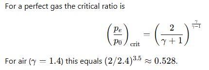At this critical condition, the flow is choked (Mach number = 1 at the throat), and any further decrease in the downstream pressure will not increase the mass flow rate.