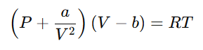 Explanation: The van der Waals equation of state for real gases is: