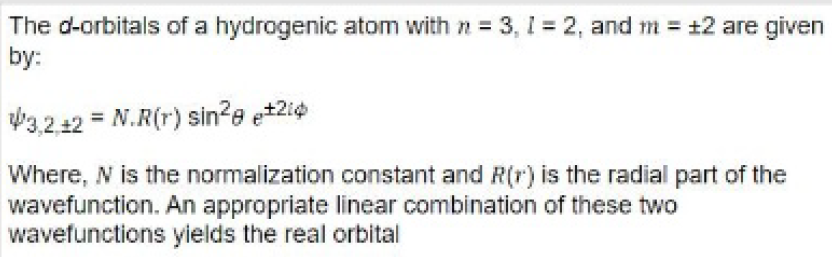 taken together give the angular distribution of the electron. Thus, the total wave function ψe which constitutes what is known as an orbital, depends on the quantum numbers n, l and m, i.e, we have different ψe functions (or orbitals) for different values of n, l and m and hence different behaviour of the electron in the atom.