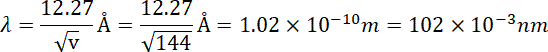 The de Broglie wavelength of an electron moving with kinetic energy of 140eV is nearly