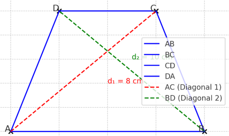 The diagonals of the rhombus are d₁ = 8 cm and d₂ = 10 cm.