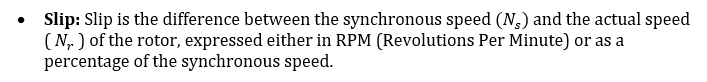 Actual Speed: This is the speed at which the rotor of the induction motor actually rotates, and it is always slightly less than the synchronous speed due to losses and the nature of induction motors.