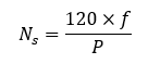 where f is the frequency of the AC supply in Hertz, and P is the number of poles in the motor.