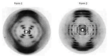 Its diffraction pattern has a characteristic “X” shape — matches Form 1.