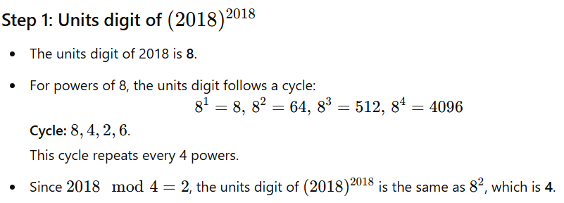 The digit in the unit place of (2018)2018 + (2019)2019 + (2020)2020 is :