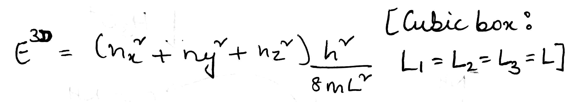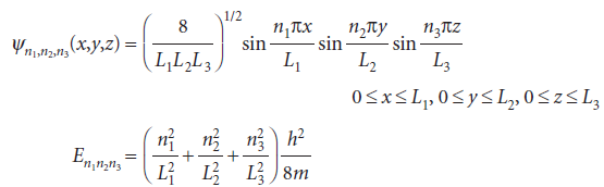 We treat a particle in a three-dimensional box in the same way. The wavefunctions have another factor (for the z-dependence), and the energy has an additional term in