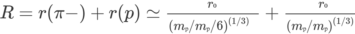The masses of π- and p are approximately mₚ/6 and mₚ, respectively. If we estimate the system as a hard sphere, its diameter might be roughly approximated by the sum of the radii of π- and p,