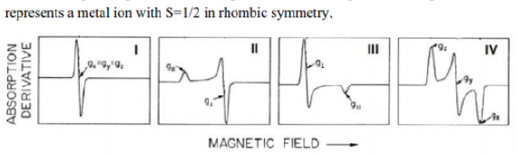 The g-value obtained from an EPR experiment provides diagnostic information about the system being investigated. For a paramagnetic metal centre, the g-value is characteristic of the oxidation state (i.e. the number of unpaired electrons), the coordination environment and the molecular symmetry. However, unless a system has cubic symmetry (i.e. it belongs to the Td, Oh or Ih point groups and is isotropic), the g-value depends on the orientation of the molecular principal axis with respect to the magnetic field. Such systems are said to be anisotropic. By rotation of the sample placed in the magnetic field in three orthogonal planes, three g-values are therefore obtained. Each g-value is associated with one of the three orthogonal axes. Three cases must now be considered: